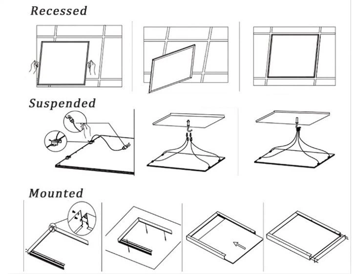 Използване във вдлъбнати, повърхностни или окачени приложения (необходими са допълнителни комплекти аксесоари)